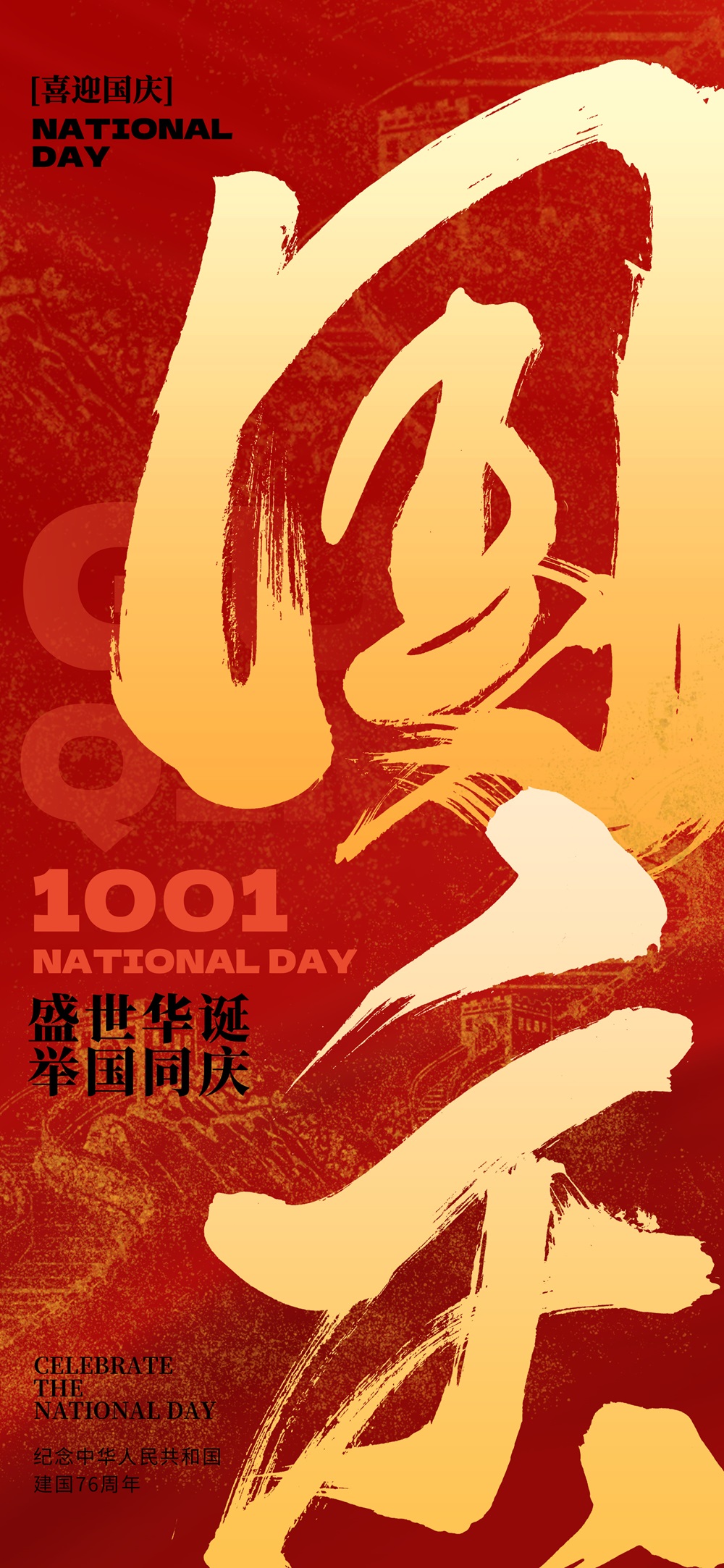 红旗漫卷,江山如画,祖国长青,祝福永存
